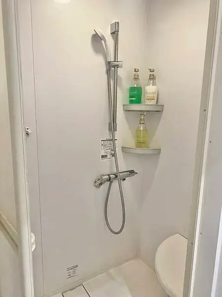 浴室內的水壓很強,不過需要注意的是,節水設計會自動關水,需按開關繼續使用