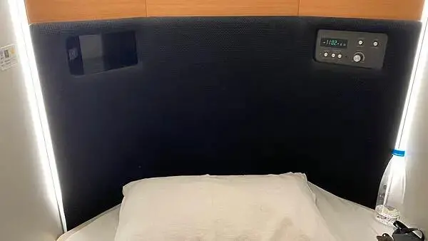 這次我選擇的房型是右邊豪華膠囊房,我的房型上下層都是我個人專用,下層設有置物櫃,空間大得可以輕鬆收納行李和日常購買用品可以方便就拿東西,還可以放很多,有提供鑰匙讓你上鎖!中間兩個按鈕🔘上方是房間電燈,下方是置物櫃電燈 這裡的門簾是用簡單的卡榫固定