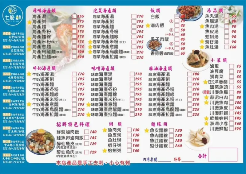 七股•鮮 滷肉飯虱目魚料理專賣店 菜單