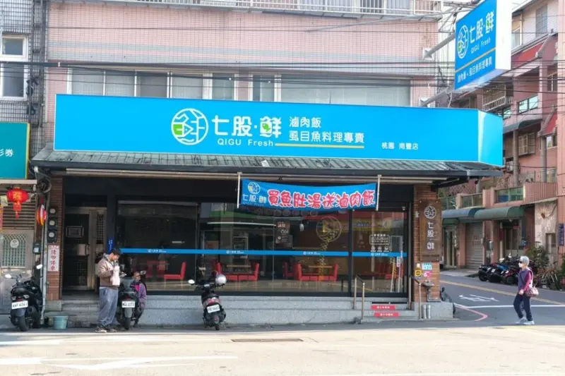 ▼從台南起家的【七股•鮮 滷肉飯虱目魚料理專賣店】,在全台共有多家分店,讓人無論在各地都能吃到新鮮美味,這次來到位於桃園的平鎮店,看到充滿海洋感的藍色招牌就是了!