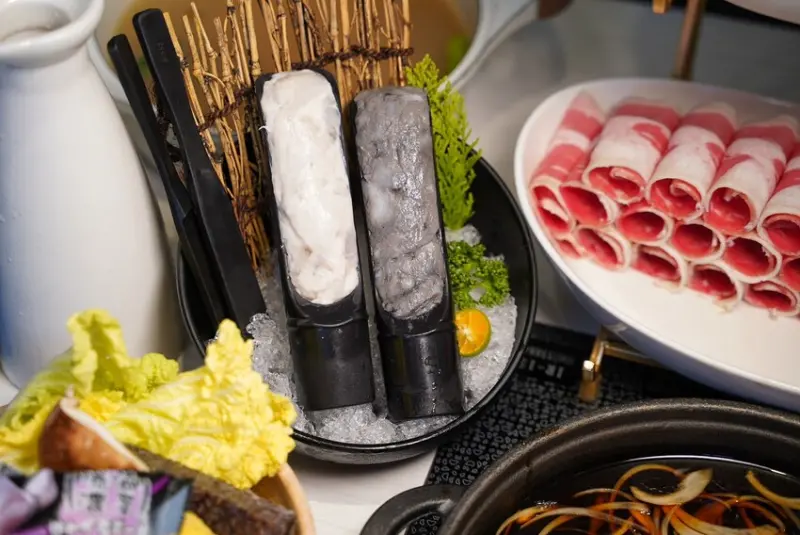 火鍋湯底有12種選擇,除了慢燉雞湯鍋、北海道昆布鍋,其餘口味需要加價升級。很推這款「蒜頭蛤蜊」,喝起來蒜味濃郁,還帶有蛤蜊鮮甜滋味,同時吃得到大顆蛤蜊在裡頭,拿來煮蔬菜類鮮味十足。「剝皮辣椒」喝起辣中帶甜,同時又雞湯的甘甜滋味。