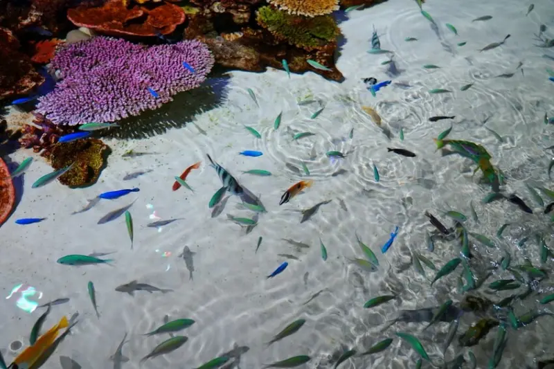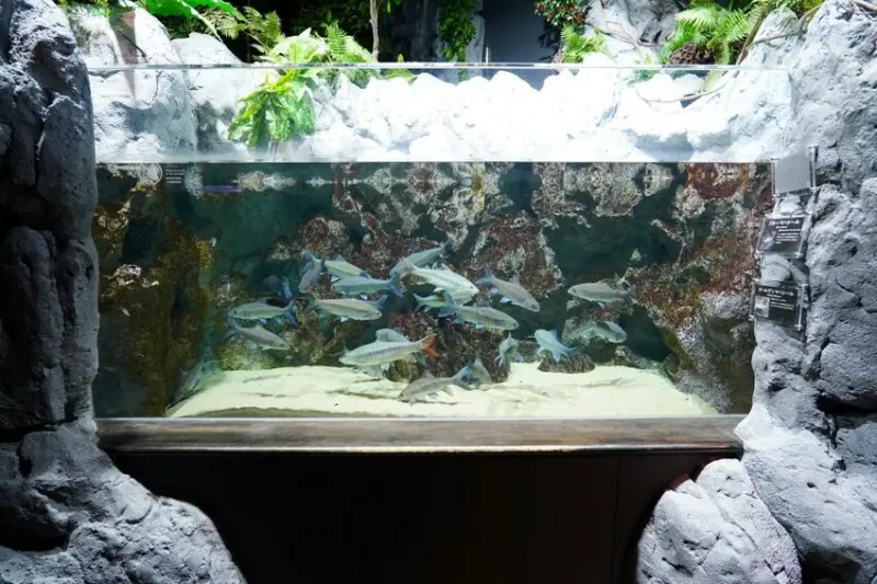 這個小小的水族館,真的讓你可以超近距離觀察到各種生物!不管是小魚還是其他動物,都感覺離你超近,像是可以更清楚看到牠們的細節,超有趣的~