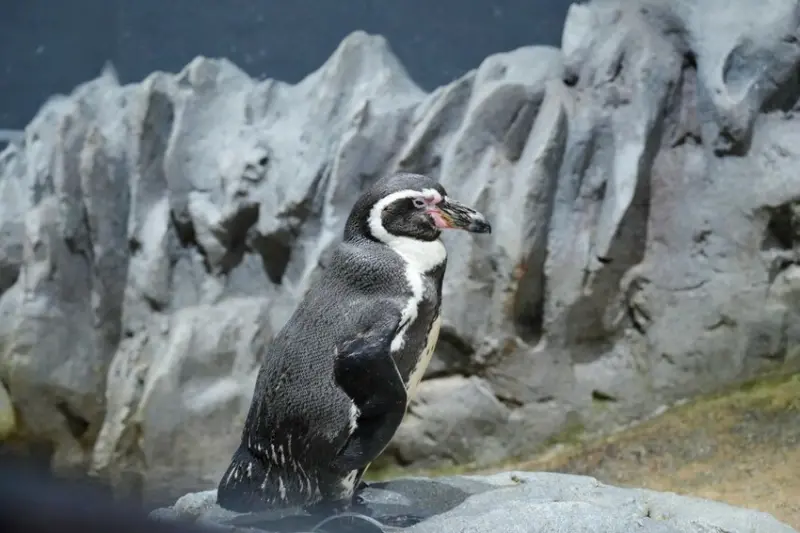 館內的企鵝是漢波德企鵝,牠們主要生活在南美洲西部的洪堡洋流周圍。牠們會捕食沙丁魚、其他魚類、甲殼類和軟體動物,這些食物都來自牠們生活的海域。漢波德企鵝喜歡在岩洞或自己在沙裡挖的隧道中築巢,並在那裡繁殖和撫養小企鵝。而且每年牠們會蛻一次皮,蛻皮期間牠們會待在陸地上,完全不上水休息。