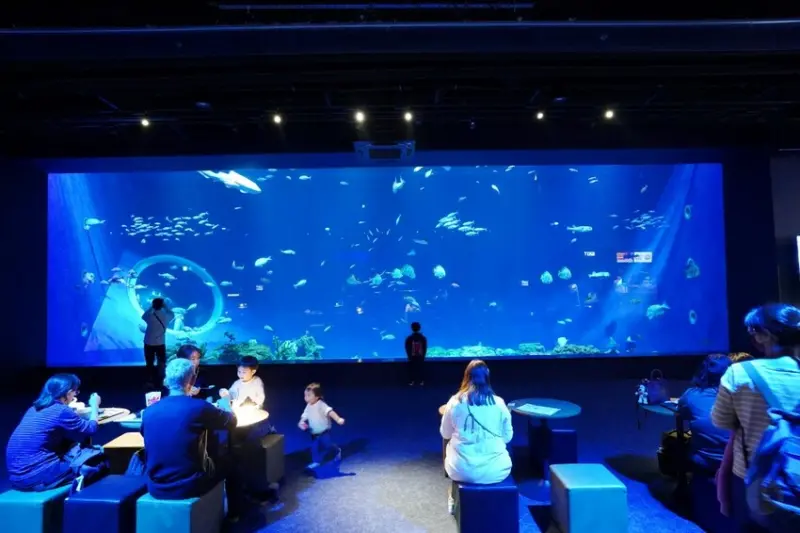 DMM Kariyushi 水族館是 2020 年 5 月開幕的喔!這座水族館運用了超先進的視覺科技和空間設計,雖然整體空間比美麗海水族館一些,但規劃得比較集中,逛起來更順、更輕鬆~
