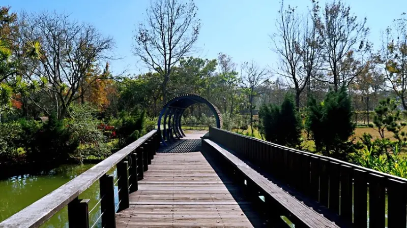 埤塘溼地、小橋木棧道、彎月型草坡、觀景步道、圓弧型(水管造型)的景觀休息區,因為特殊水管的造型,也令遊客們感到驚艷有趣。