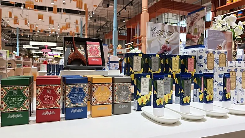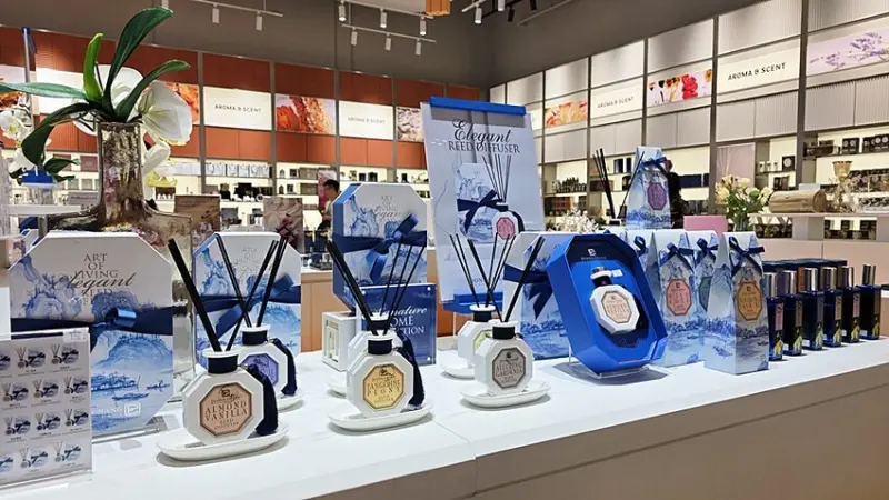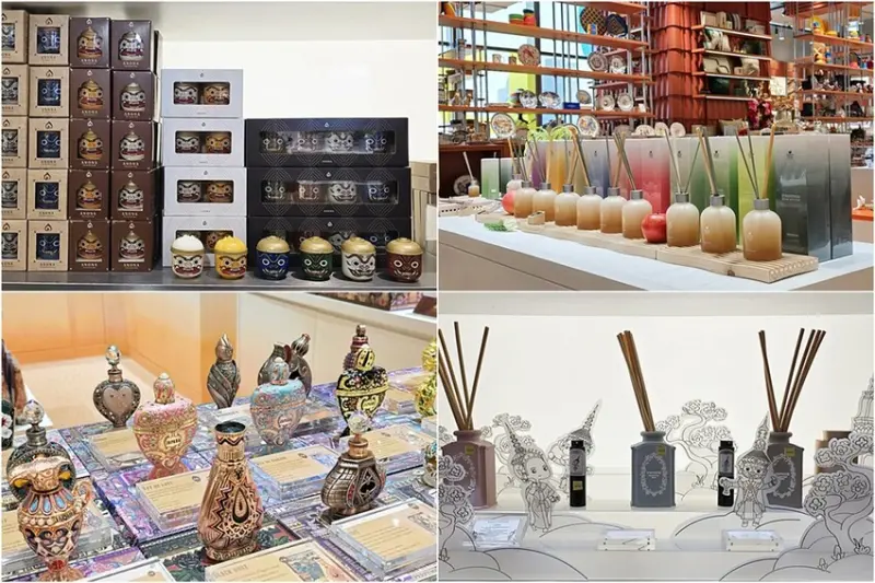 這一大區以香氛為主,有擴香瓶、滾珠、香水、吸鼻器、化妝品、保養品、餐具、碗盤生活用品等等