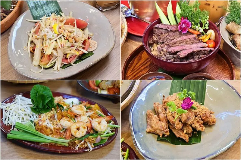 小凉特愛這家的青木瓜沙拉,醬汁調的好,吃起來相當清爽又脆口、相當開胃!右邊的是選以炭烤來烤嚴選的牛肉,牛肉吃起來很鮮嫩唷!來泰國小凉每次都會點的就是左下角的泰式海鮮炒粿條,不只是鮮蝦去殼又肥美彈牙,粿條入味又滑Q,一定要在淋上些許檸檬汁更涮嘴!!當然吃飯少不了的就是炸物,這邊的炸雞翅很夠味又涮嘴!!