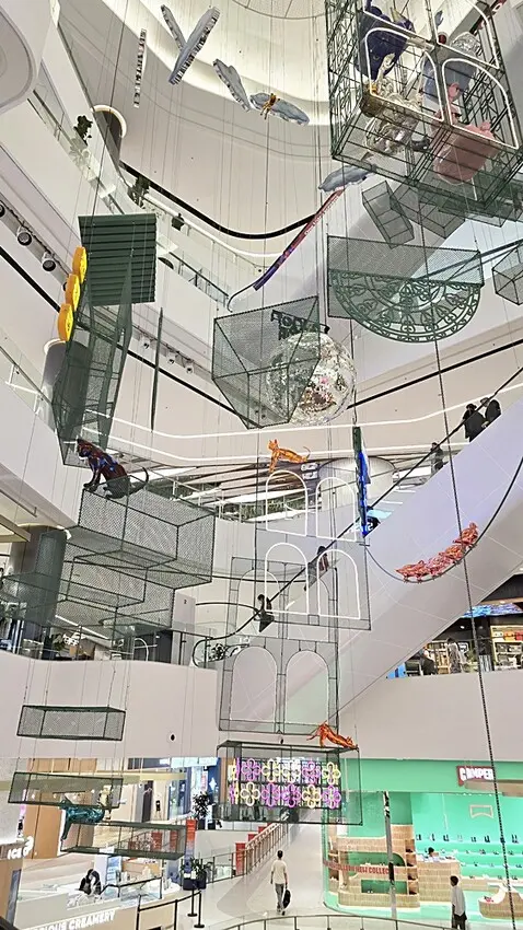 沿著手扶梯往下去,可以在中庭看到不少造景唷~