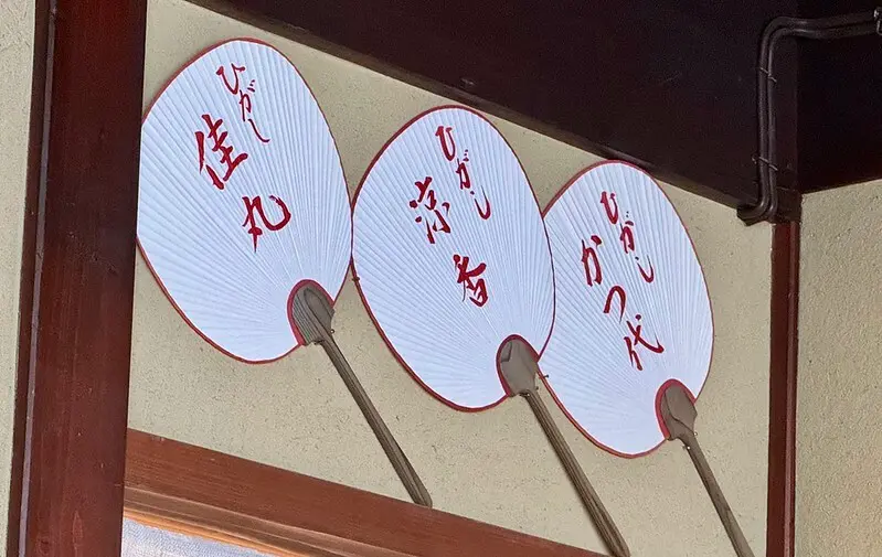 看到櫃檯上的扇子覺得有意思,隨口問了,得到的答案是金澤藝伎的扇子,有一點像她們的答名板(名片之類),當然那得是有一點名氣的藝伎。上面的日文寫著「東」ひがし指的應該是東茶屋吧。