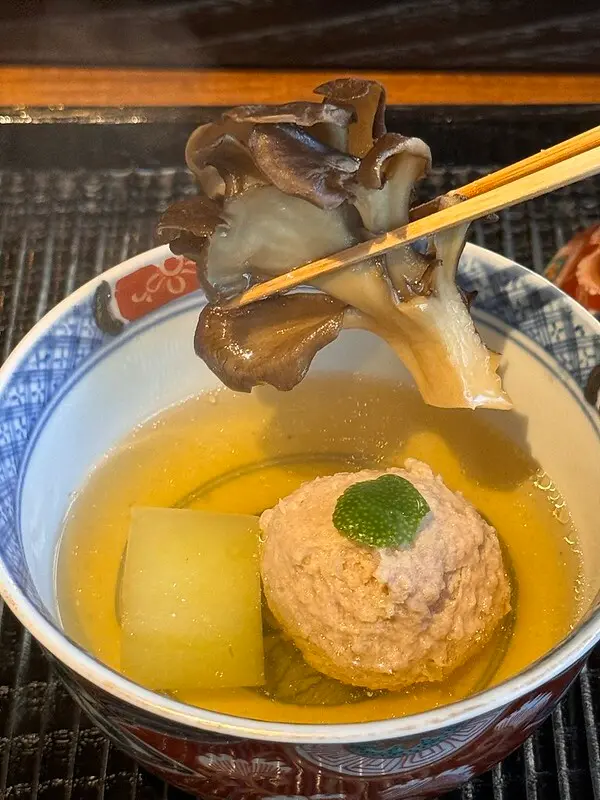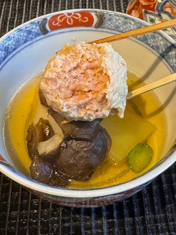 軟嫩又甜到亂七八糟的鴨肉丸子,吃起來有一點像在吃鴨肉漢堡的Juicy而且非常飽嘴,混著和以松茸熬出的鮮美湯汁,真是我吃過最好吃鴨肉丸子。