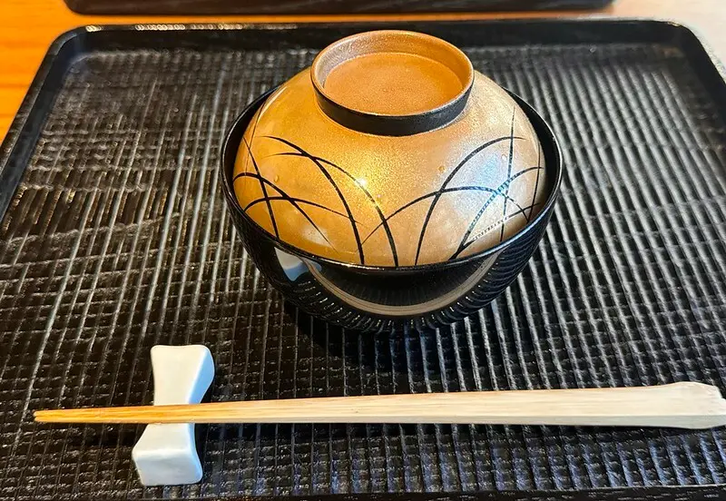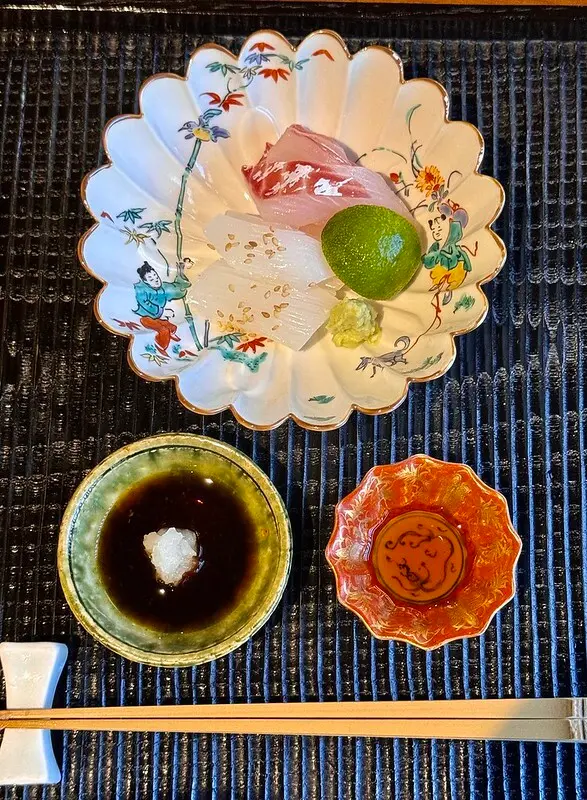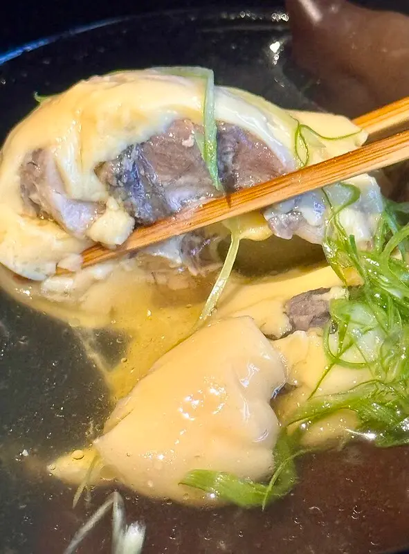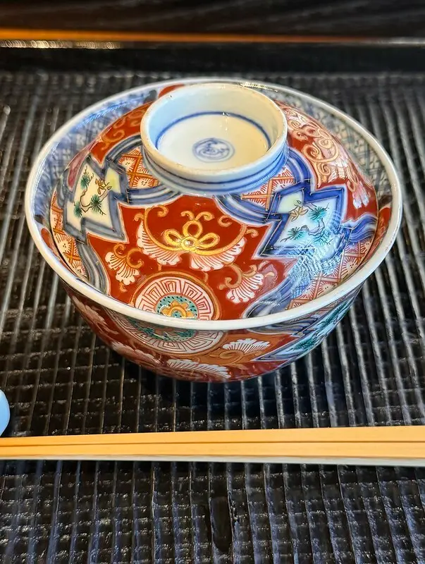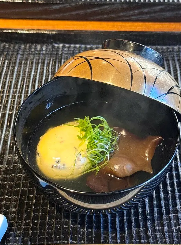 鱉肉/蛋/木耳,一般來說懷石料理常見的椀物,裡面都會有一個以海鮮(通常是魚漿)做成的丸子,但我第一次看到用的是鱉肉,外層則是蛋,吃起來的口感像茶碗蒸裡包著鱉肉,這鱉肉非常非常非常軟嫩,帶著滿滿膠質和以前吃鱉所沒有肉感,味道端也沒太多腥味,反而是附上滿滿的高湯清甜,另外就是一點像中式藥膳運用木耳的氣息,非常非常特別的一道料理。
