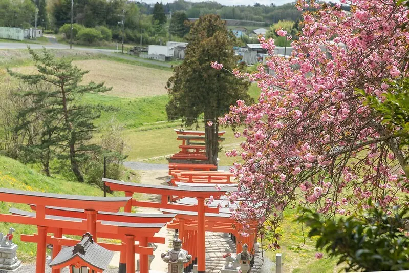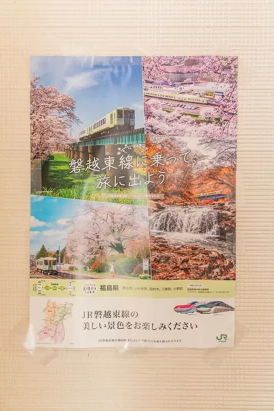 好的, 接下來我們要跟著五郎去搭「磐越東線」(磐城站至郡山市的郡山站),是說我來福島超過十次,好像只搭過一次,而且是直接到いわき才下車....。這是第一次好好認真的搭這條線,雖然只有一站...附帶一提的是舞木站的下一站就是名滿福島的一本櫻「三春瀧櫻」的所在地,也是個人福島最想去的地方之一。另一個藍色的大圈則是福島境內最大最有名的稻荷神社「高屋敷稻荷神社」,有關這座300多年歷史的神社,我們文末再聊。順便一提的是從舞木ドライブイン到神社的步行距離是半小時,能走的朋友不妨像我一樣,吃完飯當聊步運動一下。
