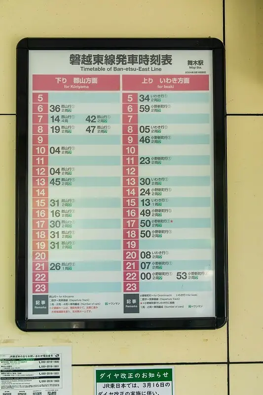 磐越東線共有16站,正式開通的時間是1914年7月21日,五郎肚子餓的這一部是離開郡山後的第一站「舞木」,兩站間的距離大概是5.8公里。