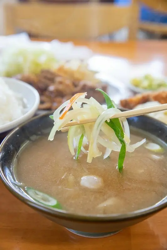 定食附的是福島的鄉土名物とん汁,但這裡相對淡又或者應該說清爽許多,跟五郎一樣第一個聯想到的是旭川的自由軒,裡面有很多洋蔥和蔬菜,對於有一點過鹹的燒肉而言,這一碗真如即時雨般的美味。