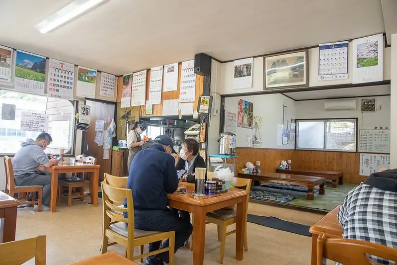 餐廳內比外觀看起來乾淨舒適許多,四五十個位子,不到一小時居然全坐滿....。就郡山友人的說法,這裡以前是很多大型車司機的食堂,後來因為不少節目來拍開始除了郡山的人會來吃外,慢慢也有觀光客,前年因為孤獨美食家播出後,甚至有台灣、中國、韓國的客人遠到而來,尤其是假日經常大排長龍。
