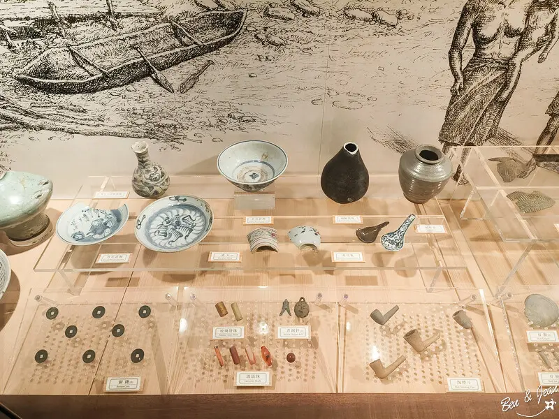 這裏展示了考古工具及挖掘到的生活器具