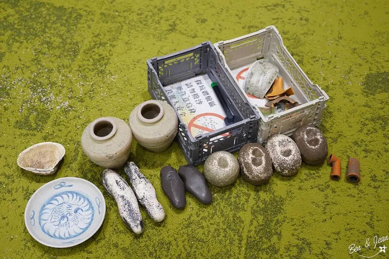 沙坑裡可以挖出陶瓶、碗盤碎片、貝殼…,這些都是當時人們生活的遺跡