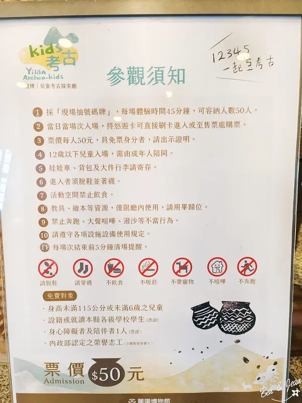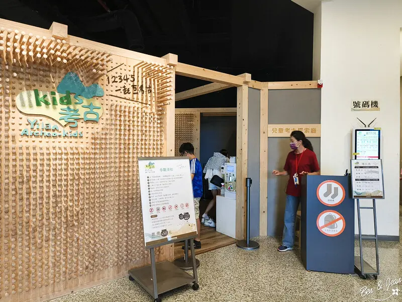蘭陽博物館「兒童考古探索廳」宜蘭超熱門親子景點 ! 只要50元就能體驗考古挖掘的樂趣,六歲以下還免門票呢!「考古探索廳」是全國首座縣市級考古親子博物館展廳,空間有130坪、考古文物展示約220件,有分場次,入場需脫鞋,記得穿襪子哦!因為很熱門,所以先抽號碼牌再購票,等待的時間也可以參觀一下蘭陽博物館哦!