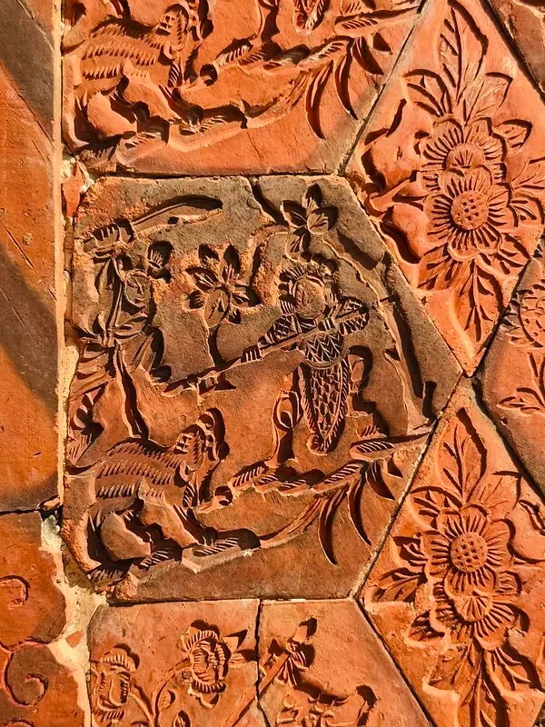 雕花門窗精緻細膩,彩繪圖案栩栩如生,