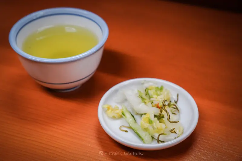 點完餐後,店家會隨即附上醃漬小菜與熱茶,熱茶店家會隨時補充。