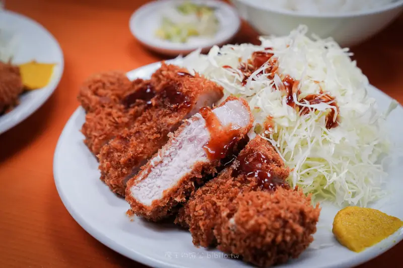 當天點了兩款套餐分別是:炸豬腰里肌套餐850日幣跟上等炸豬腰里肌套餐1350日幣,出餐方式店家會擺在我們位置上方的桌面,大家要自己取餐,而用餐完畢後,大家也會有默契地把餐盤放上去桌面讓店家方便收拾。