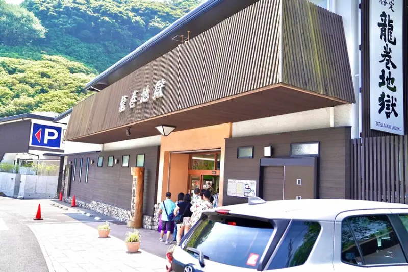 龍卷地獄溫泉跟血池地獄溫泉是鄰居,看完血池地獄溫泉直接走過去即可,龍卷地獄溫泉最大特色就是溫泉會從地底下噴出滾燙破百度的溫泉水,所以大家是不能站在溫泉前欣賞,一定要保持距離,現場也有設計休息區讓大家坐在那欣賞,而龍卷地獄溫泉還有一家以大分檸檬,水果製作的冰淇淋,超級推薦大家買來坐在龍卷地獄溫泉前邊吃邊欣賞溫泉。
