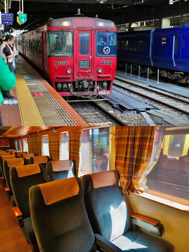 差在由布號不是觀光列車還有停靠站會多一點而已,然後不管是由布院之森或由布號,這兩台車的的行駛路線是一樣的,票價方面也跟由布院之森差不多,另外由布院之森若沒有行駛的時候,要前往由布院,就會以這台由布號代替。