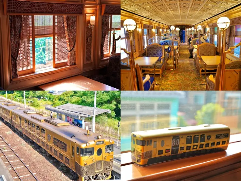 日本真的超多觀光特色列車,這一台觀光特色列車真的是只要搭過一次,就會印象深刻,在九州有一台比照奢華觀光列車七星號打造的或る列車,是約在1906年,由當時的九州鐵道公司跟美國J.G. Brill Company訂製了一輛豪華 列車九州鉄道ブリル客車(Kyushu Railway Brill Train),但因為遇上後來日本鐵道國有化之後,這輛豪華列車理所當然被接收,但後期經營不善,便再也沒有機會服務大眾,而後來在已故的世界鐵道模型之神原信太郎先生與觀光列車大師水戶岡銳治以及原鐵道模型博物館副館長原健人氏的監督合力打造這輛百年夢幻豪華列車,目前每週六日及週一固定行駛於 博多-由布院,特色就是可以乘坐超奢華觀光列車在車上品嚐美味法式料理與九州各地酒造美酒、果汁、茶類,甚至連水都是有名的,單程要價7500台幣/人,但依然非常受到歡迎!