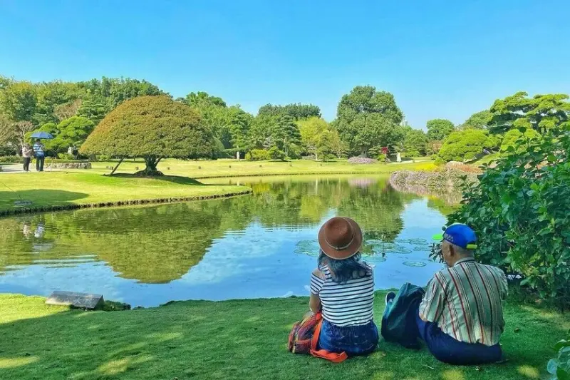 池塘是日式庭園中不可或缺的元素之一,靜如止水的水面象徵了平靜,而與池中充滿生命力的魚而產生了鮮明的對比,完美結合了「靜態」與「動態」的美。
