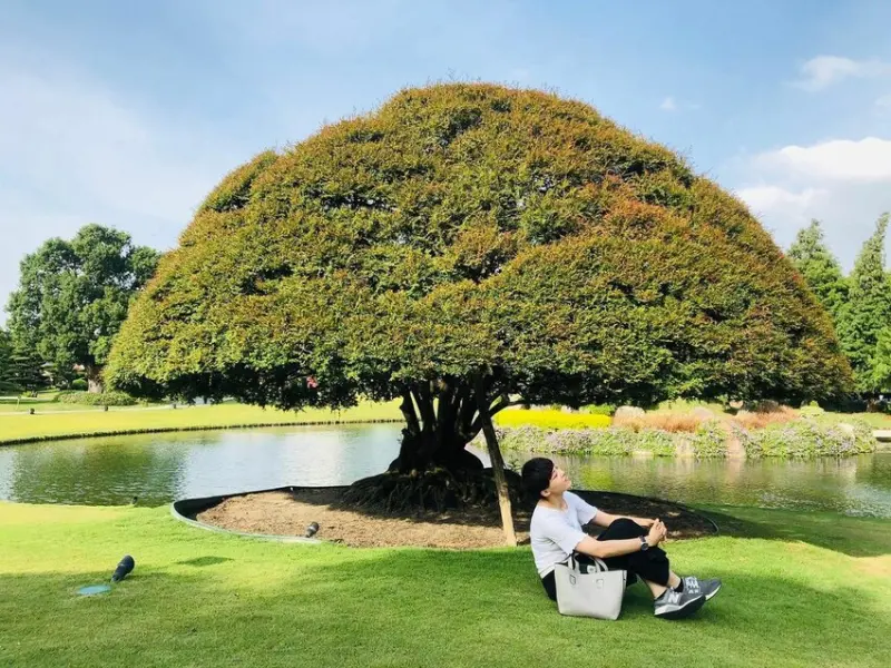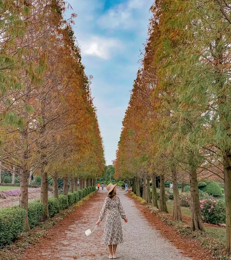 步行於湖畔旁,不知不覺間就走到了聞名的落羽松大道, 落羽松一年四季展現不同的色彩之美,春夏碧綠,秋冬從十一月起會逐間轉黃,再到一月會由黃轉紅,是成美文化園的秘境之一