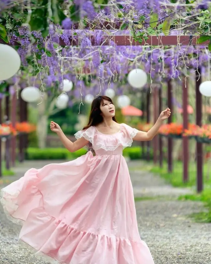 每年3-4月,是成美文化園區許願藤花盛開的季節,每到這個季節,園區內的許願藤隧道,每到花季便垂掛滿滿許願藤串,微風吹拂時花瓣輕輕搖曳,如詩如畫,讓人彷彿置身日本京都庭園。除了許願藤,園內的日式枯山水庭園、百年書院與古榕綠蔭,讓旅客沉浸在靜謐悠閒的氣息中。