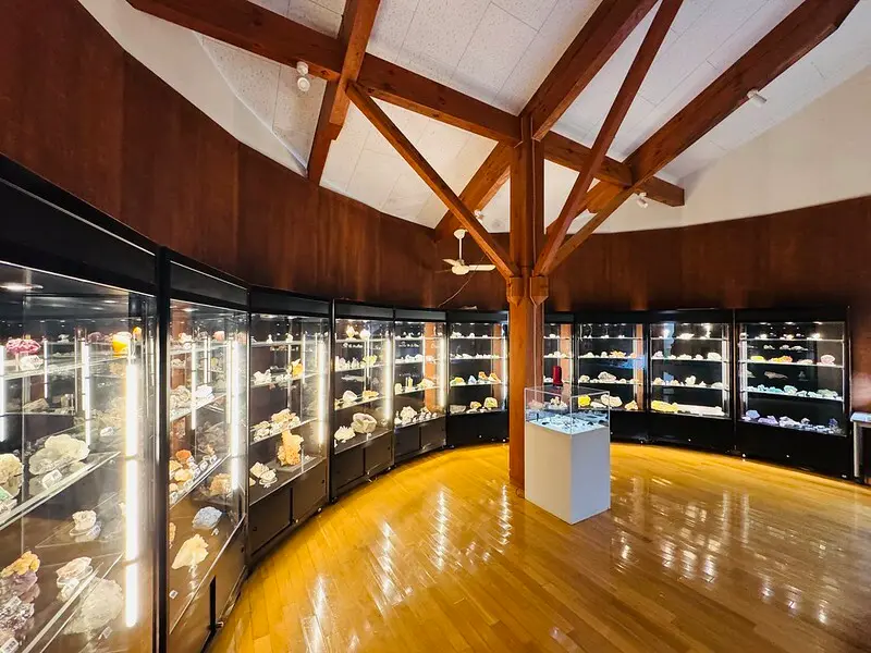 擺滿了形態各異、色彩斑斕的礦物標本,
