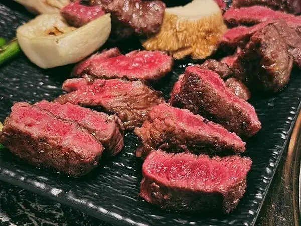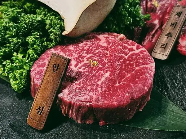 直接說結論好了,以第一次吃韓牛來說,我並不喜歡....雖然一片里脊標榜使用1+++也就是BMS9等級的最高級牛肉,可是纖維很粗,尤其是菲力有些地方咬一咬肉汁沒了會有點像是當我們把豬肉條咬久沒味道那樣.有人說韓牛是肉感十足的肉,我想最佳的形容就是一個沒甚麼贅肉很健壯的牛吧.所以網路很多人說入口即化…化不開啊!!!!!我本身偏好油花比較高的肉,吃起來才不會柴.