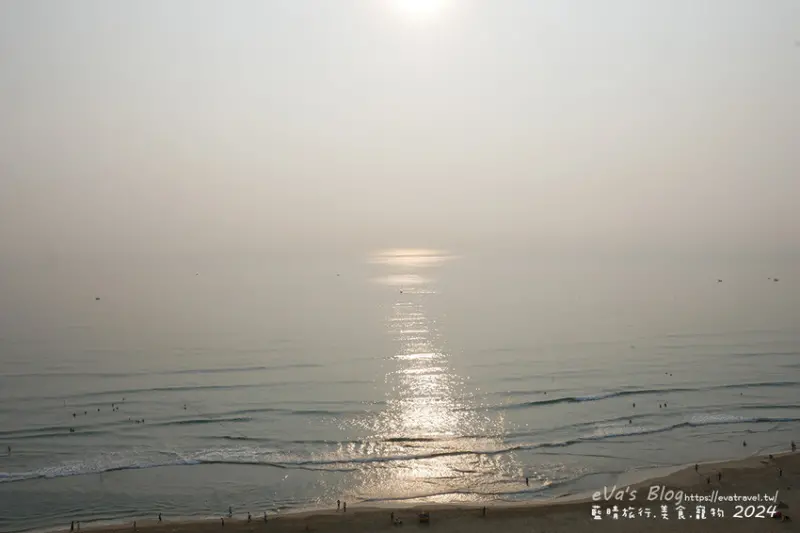 在房間就可以直接看到對面的沙灘、大海、比基尼,哈哈哈,還可以看到夕陽喔!夕陽餘暉映照在海面上看起來美美的呀!