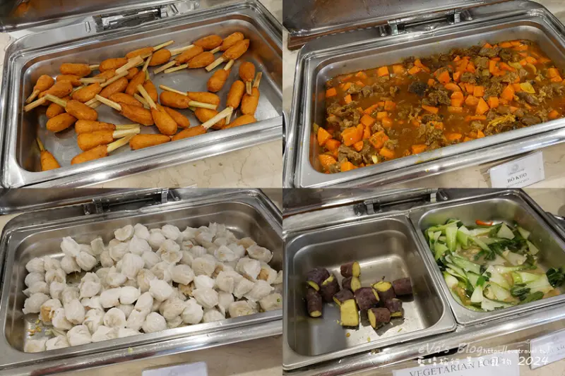 早餐提供的時間為06:30~10:00,基本的生菜沙拉、湯品、熟食、炸物、麵包、飲料、甜點還有越南河粉,供應的品項不算太多,但還是可以吃飽