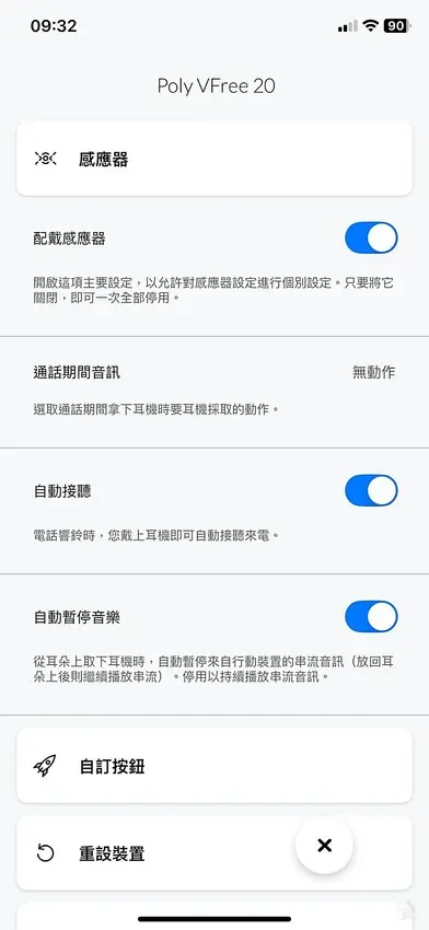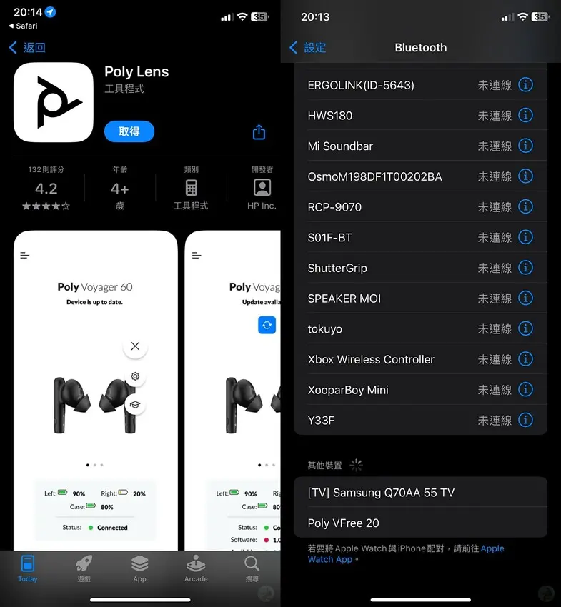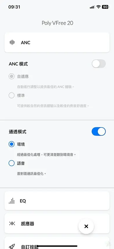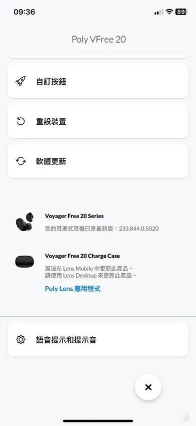 為了讓 Poly Voyager Free 20 的功能發揮到極致,官方提供了 Poly Lens APP(支援 iOS & Android),透過 App 可進一步設定降噪、耳塞貼合度測試、耳機搜尋等功能。