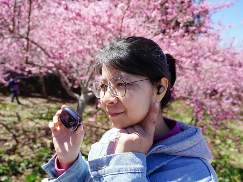 歷經 3.5 小時的自駕旅程,我們終於抵達 武陵農場,迎接我們的是壯麗的 櫻花隧道,整片山頭被粉嫩的櫻花點綴,美得彷彿走進畫中。這時候,戴上 Poly Voyager Free 20,播放一首輕柔的音樂,讓這片櫻花海更添浪漫氛圍。