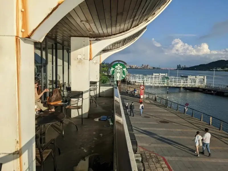 星巴克河岸門市:二樓陽台座位區可欣賞淡水河景,喝杯咖啡欣賞落日超chill。