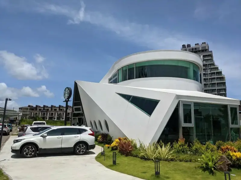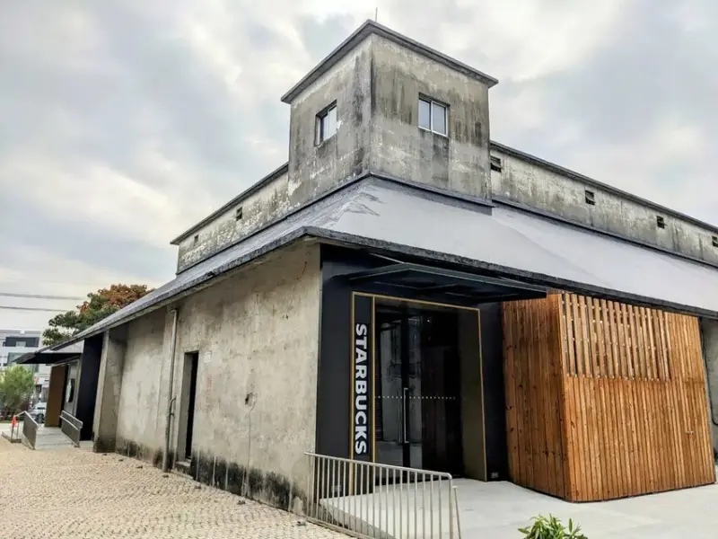 星巴克關埔門市:星巴克建築的外觀像一艘鐵灰色的大船,航向自由快樂的國度。