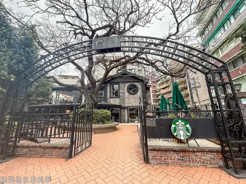 星巴克天玉門市:星巴克位在獨棟洋房內,擁有全台唯一的露天景觀座位,門口的老樹更為這間洋房增添許多故事感,二樓還有許多窗景的景觀座位區。