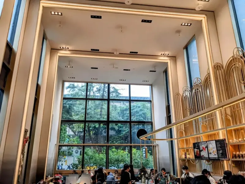 星巴克時代寓所門市:全台唯一飯店式星巴克,雅緻高貴的裝潢,周圍都是整片落地窗採光極好。