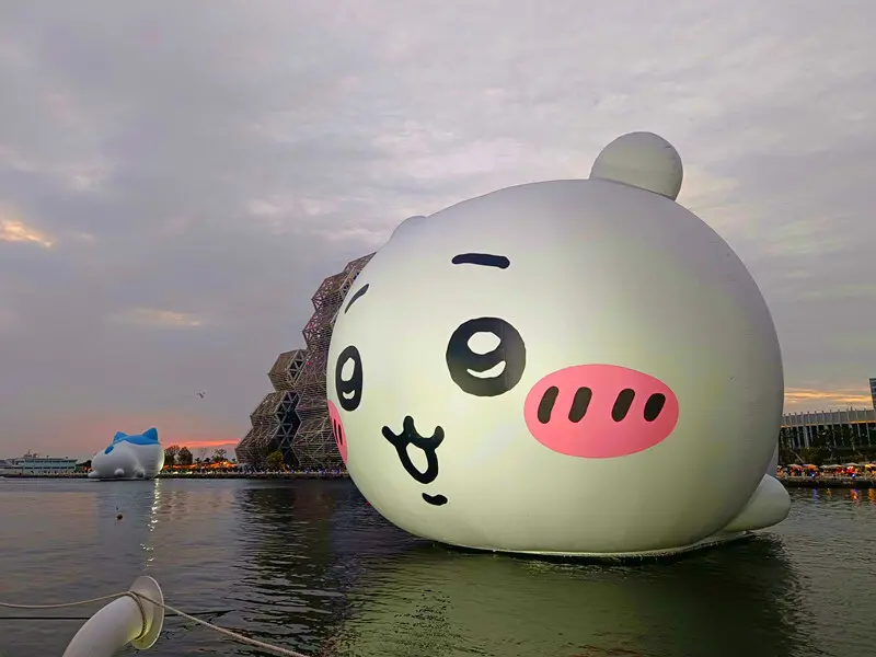 這幾隻可愛的公仔就漂浮在愛河灣上,跟我前幾年來拍的聊癒漂漂河一樣卡哇伊,旁邊還有不少水上活動,包括可直接開進水裡的水陸車和需要用槳划的橡皮艇等,都可付費去體驗喔!