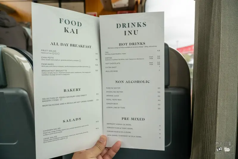 座椅網帶內有菜單,肚子餓想吃東西可以點,點餐價格不浮誇,是可以接受的價格。