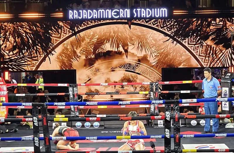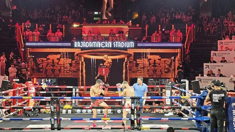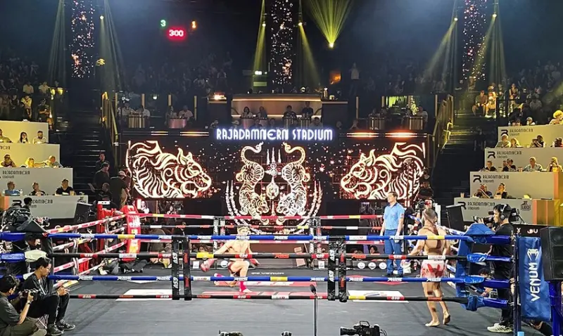 要開場前天花板會有投影來呈現泰拳的歷史人物以及華麗的繽紛視覺效益,搭上現場的音樂,一整個就是很震撼!