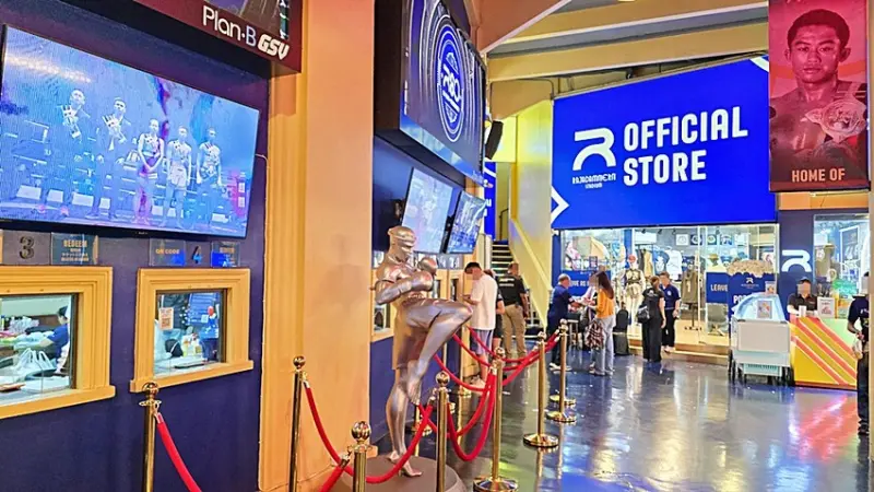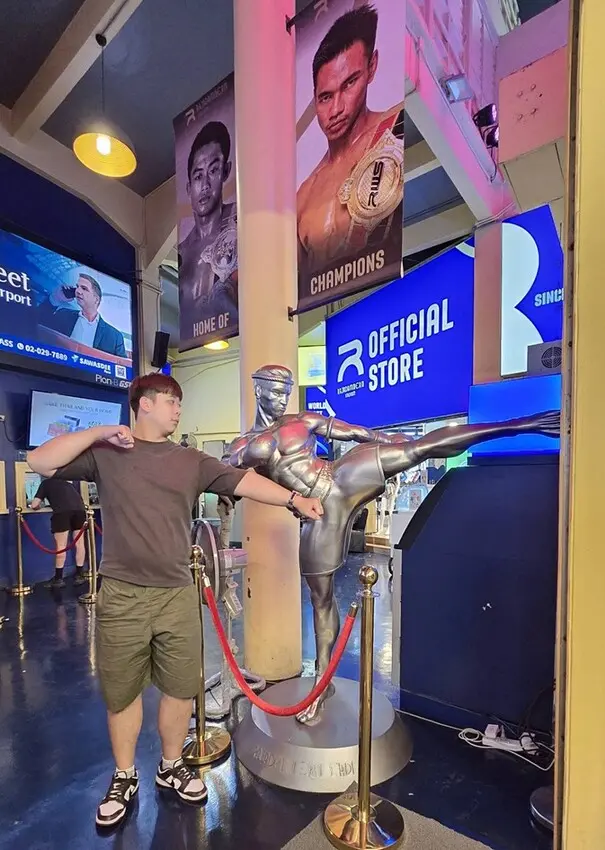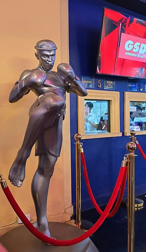 售票處有代表性的泰拳選手銅像,可以跟著擺姿勢拍照留念喔!