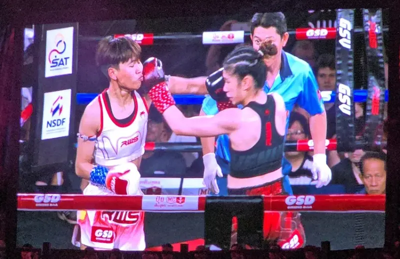現場會依照選手打得激烈度,或是某一動作就會有不停的現場音樂來呈現,從管弦樂隊、Mongkol 到 Prejied,再到真正的當地歡呼聲!真的很用心,難怪每一場幾乎都是滿場的人潮!!