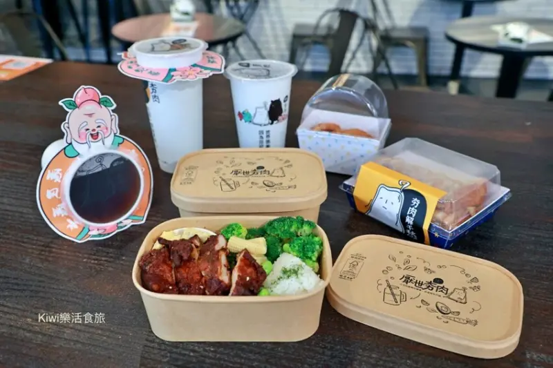 台中西區美食推薦厭世夯肉健康餐盒,位在台中市西區博物館旁的周邊美食是台中隱藏版超人氣美食,厭世夯肉也是近期台中朋友超推薦的健康輕食餐盒,部落客平時縱食過度,在家時也會吃個健康餐盒,讓自己健健康康的(笑)。台中西區厭世夯肉健康餐盒主打輕食、沙拉、烤肉、炸物、丹麥土司、低GI溫野菜夯肉餐盒,現烤的夯肉飯很好吃呦!我們這次也點兩份套餐,秘制烤十勝豬排飯飯、洋蔥圈、柳橙綠茶、厭世烤丹麥芋泥豬豬胖、停不下來麻麻的雞腿排飯飯、北海道咖哩可樂餅、英格蘭紅茶(中)、咖啡。每一款都好吃~如果你有在重訓或者偏輕食主義,想把飯換成法式滑蛋或者低GI都可以耶!想要吃重口味,份量多的朋友,絕對要來試一下加倍量的肉肉夯肉飯呀!