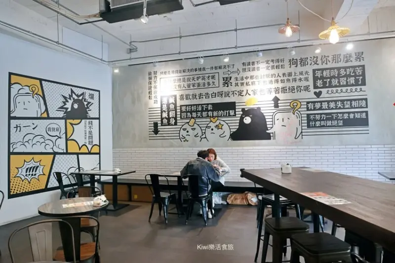 療癒的夯胖插畫也太療癒,不僅如此唷!牆上也有很多的厭世標題文字,完全融入生活的標語,讓人邊看邊笑。