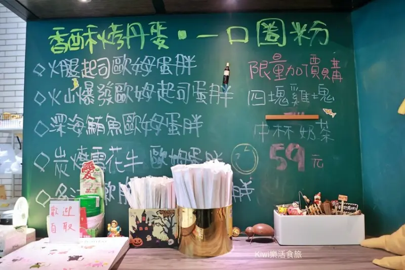 可愛黑板上香酥烤丹麥文字是店裡超夯的餐點呦!想要好好吃美食,到厭世夯肉就對了呀!