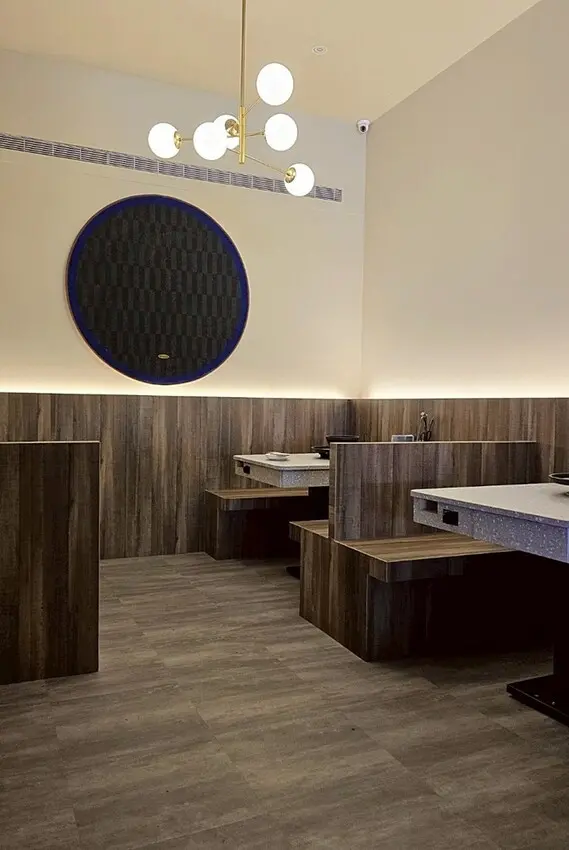 室內裝潢走的是溫馨懷舊的路線,也讓人回想起過往在吃可利亞火烤兩吃的情境。重點這邊桌和桌之間的規劃也相當好不擁擠,桌子上的飛碟烤盤重現江湖、孰悉的烤肉香啊!對了!桌邊抽屜內有紙巾,且美滿火烤店也接受一個人來享受午晚餐的火烤兩吃唷!